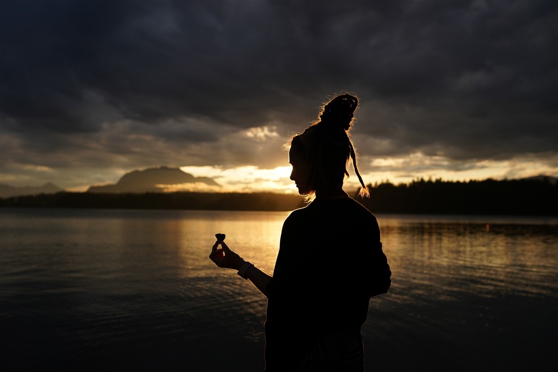 Hegyi túrácskánk végére egy tó mellé értünk. Megkoronázta a napunkat, hogy pont akkor ment le a nap és még az is, hogy a tó partán a köveket bújva, egy szív alakú kavicskára lettünk figyelmesek. A természet megannyi ajándéka.