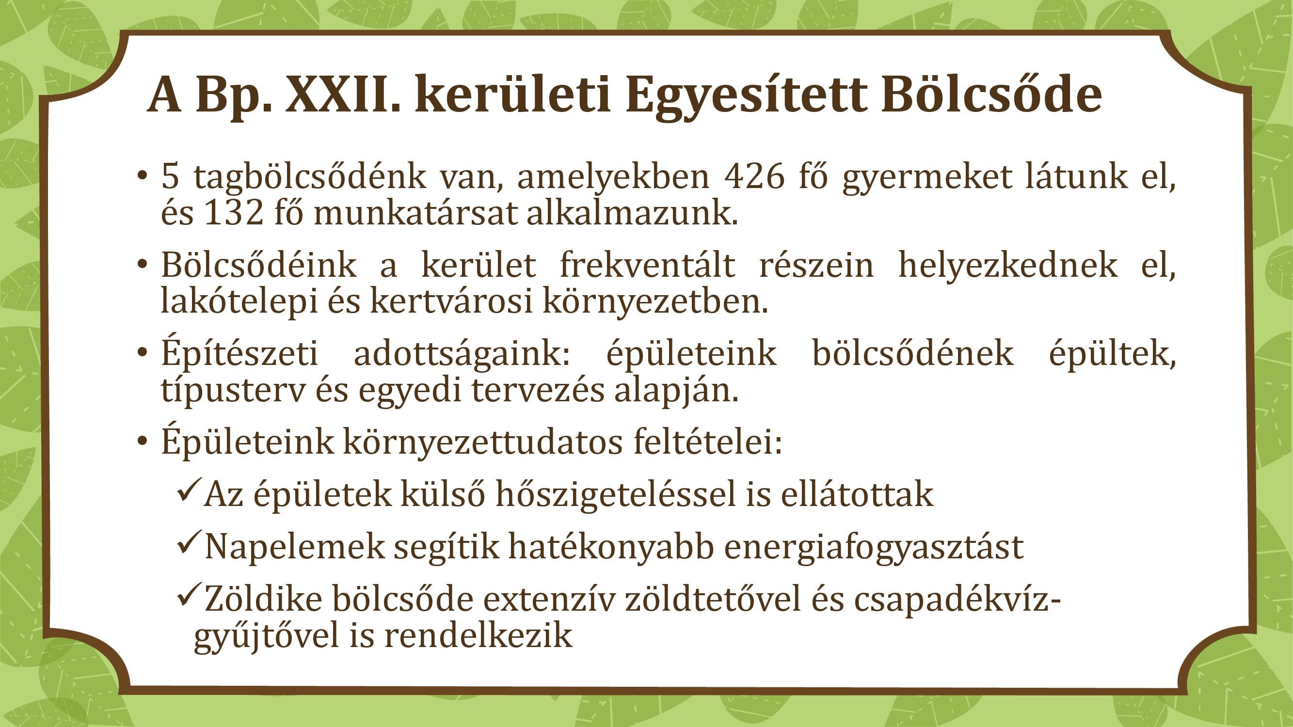 Zöld Gondoskodók - Egyesített Bölcsőde, Budapest XXII. kerület