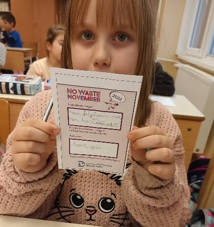 Ezután következett a No Waste November- Hulladékmentes November, amelyhez különböző programokat szerveztünk. Nagy segítség volt számunkra az intézet által küldött táblázat tele szuper ötletekkel minden napra, különböző feladatokkal, amivel erősíteni lehet a hulladékmentes életmód elterjedését.