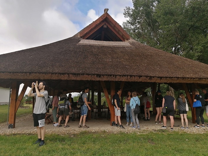 A környezeti nevelési központban magyar vendéglátóink a többnyelvű csoportot jól kezelve egész délelőtt tartalmas programot biztosítottak: szó szerint kézzel fogható illusztrációkkal kiegészített előadást tartottak arról, hogyan váltotta fel a hagyományos gazdálkodást a nagyüzemi mezőgazdaság, annak milyen hatásai vannak a biológiai sokféleségre, és milyen próbálkozások vannak a hagyományos gazdálkodás értékes módszereinek újbóli elterjesztésére. Megtudtuk azt is, hogy a túzok sajnos már eltűnt a területről. Szomorú volt az utolsó példány kitömve látni egy vitrinben… Annál lelkesítőbb volt felfedezni, hogy a kis mintagazdaságban néhány négyzetméteren hányféle rovart és apró hüllőt lehet felfedezni néhány perc alatt - mindezt egy hangulatos háziverseny keretében.