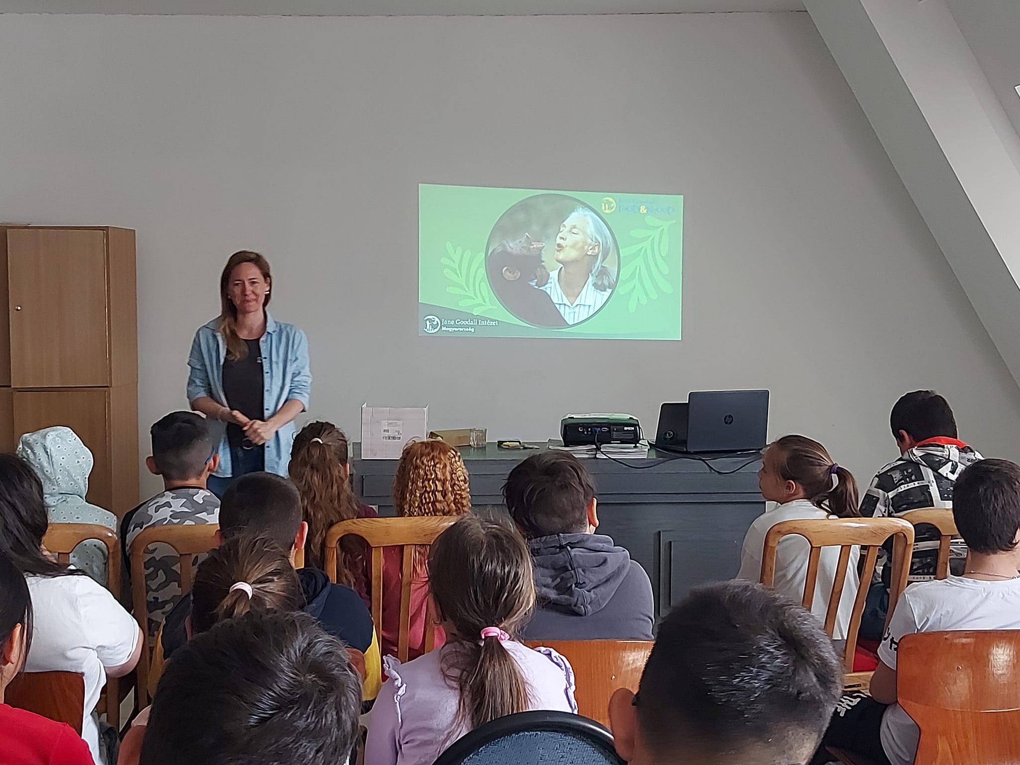 Meglátogattuk a soproni „Dalos pacsirták” ovis Roots & Shoots csoportunkat. Szívmelengető érzés volt megtapasztalni, ahogy fogadtak minket. Igazi kihívás volt a kis csoportosok figyelmét lekötni, de végül sikerült, kisebb játékok mellett szívesen válaszoltak a kérdésekre és ügyesen figyeltek. A középsősök és a nagy csoportosok is érdeklődve figyelték az interaktív előadást és aktívan részt vettek benne. Jó volt látni ahogy együtt éltek az izgalmas történetekkel, meghatódva nézték a szabadon bocsátott Wounda csimpánz videóját és izgatottan osztották meg velünk saját kis élményeiket. Az óvodájuk udvara is arról árulkodik, hogy fontos számukra, hogy a környezetükben élő kis élővilágot segítsék a lehetőségeik szerint. Láthattuk, hogy a magaságyásaikon túl található a kertjükben sünlak, rovarhotel, és több madáretető is. A program zárásaként közösen ültettünk egy fát Dr. Jane 90. születésnapja alkalmából. Az egész óvoda részt vett az ünneplésben.
