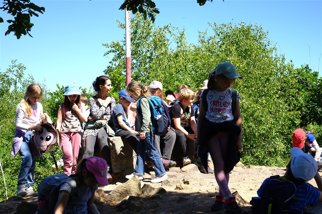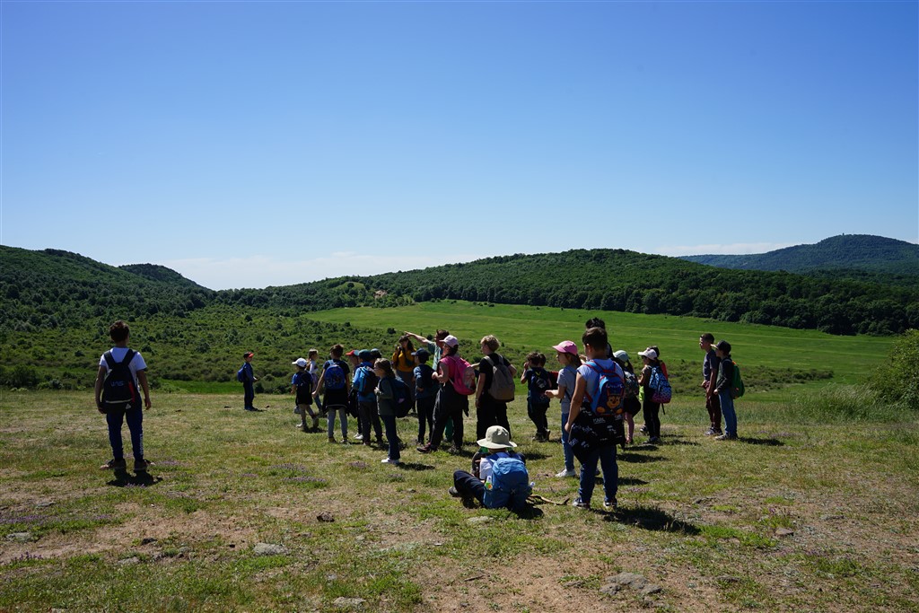 A gyerekek vidáman ugrándoztak a fűben, kergették a törpeboglárkákat és hősiesen megmászták a vörös szikla lépcsőket. A nap gyönyörűen sütött és illatozott a kakukkfű.