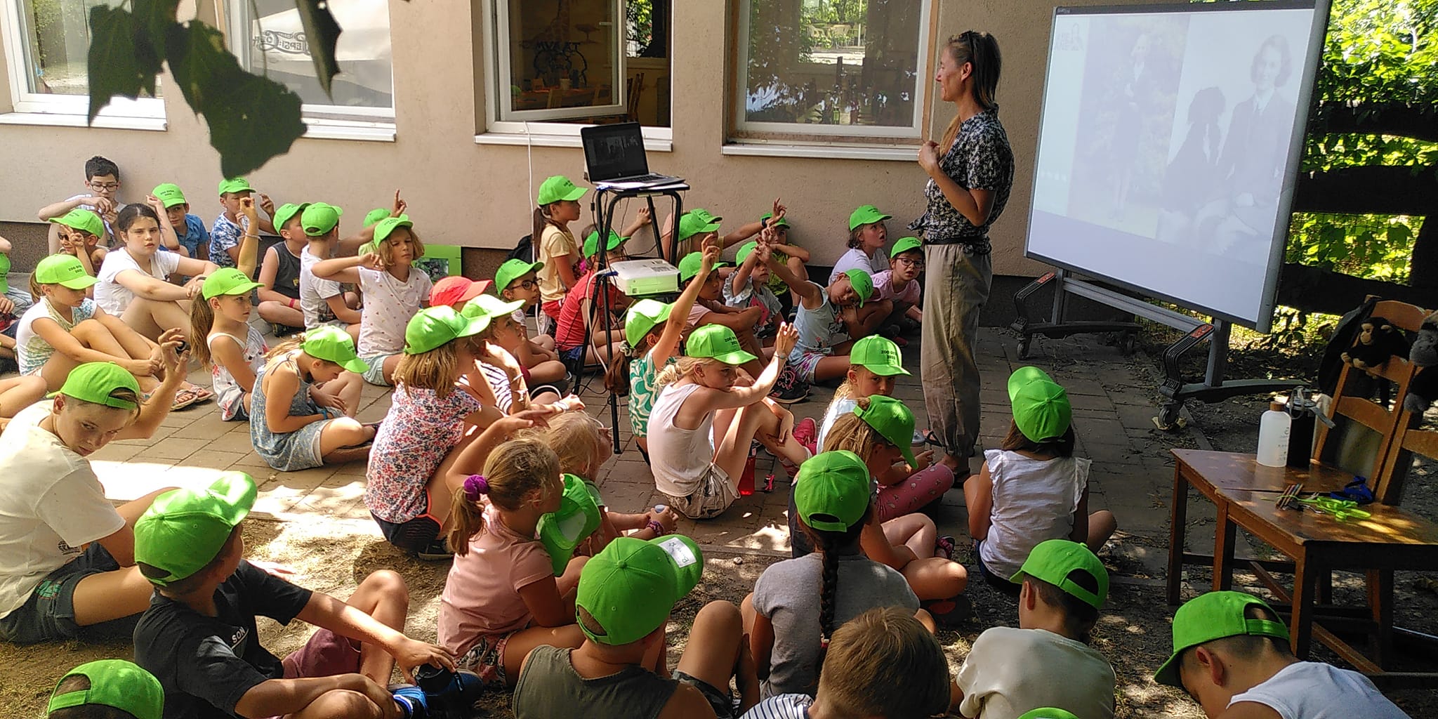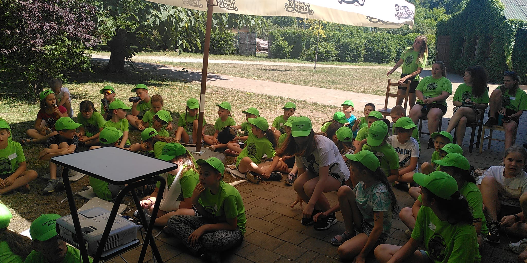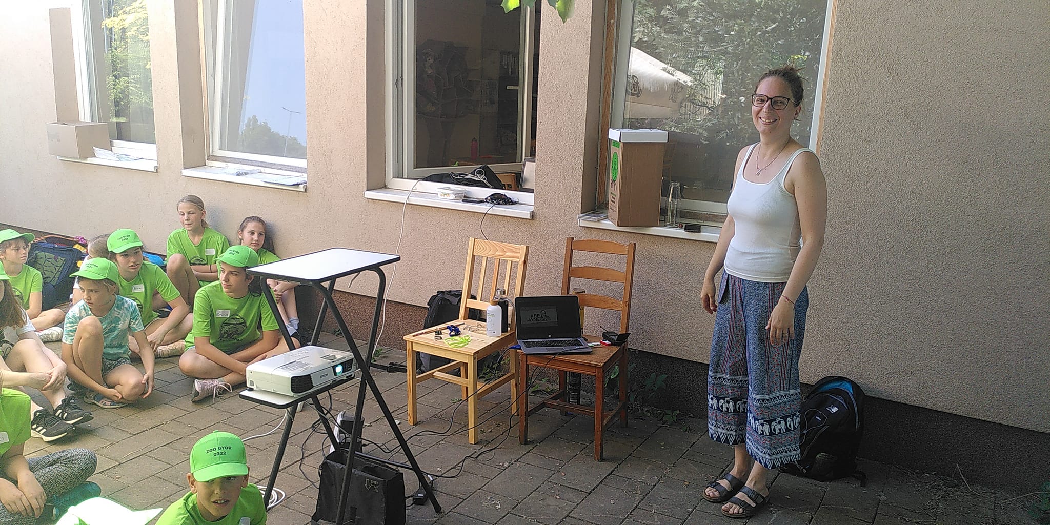 Hétfőnként a Győri Állatkert Zootáborába látogattunk el, főleg a csimpánzok életéről és élőhelyük csökkenéséről tartottunk előadást. Az állatkertben élő csimpánzokkal is picit ismerkedtünk, persze üvegen keresztül.
