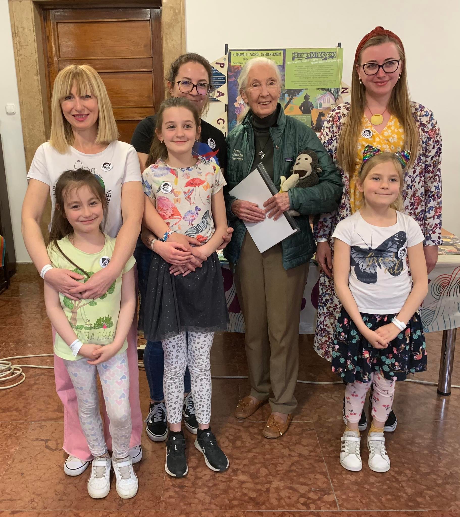 Amikor hozzánk odajött nagyon megdicsérte a molinót, azt mondta angolul, hogy „nagyon csodálatos, és szép munka” Meghallgatta a csapatunk bemutatkozását és biztatott bennünket, hogy haladjunk tovább ezen az úton. Zárásképpen elmondtuk dr. Jane jelmondatát: „ Together we can, together we will, together we must"- ezen nagyon meghatódott ő is. Aztán beállt a csapatunkhoz és készült vele egy közös fénykép is, amely örök emlék lesz számunkra, hiszen fantasztikus és különleges érzés volt, hogy Jane közvetlenül mellettünk állt. Olyan elhivatottsággal, de mégis kedvesen beszélt hozzánk, hogy fontosnak éreztük magunkat, és örömet jelentett az érzés, hogy mi is azok közé tartozunk, akik teszünk azért, hogy legyen jövőnk.