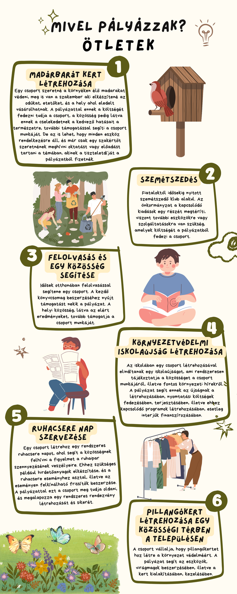 Összegyűjtöttünk pár példát arra, hogy milyen ötletekkel tudsz jelentkezni a pályázatra.