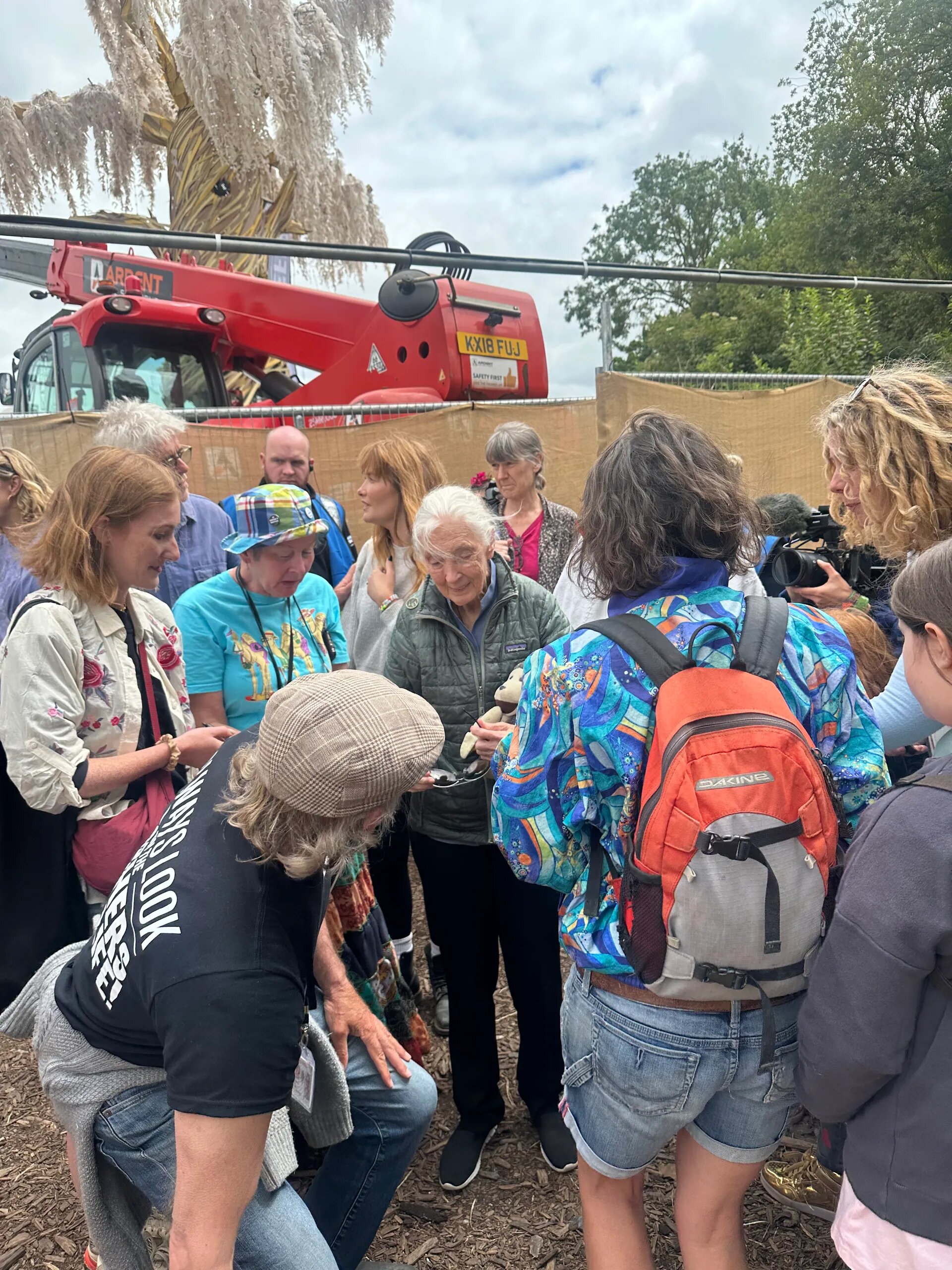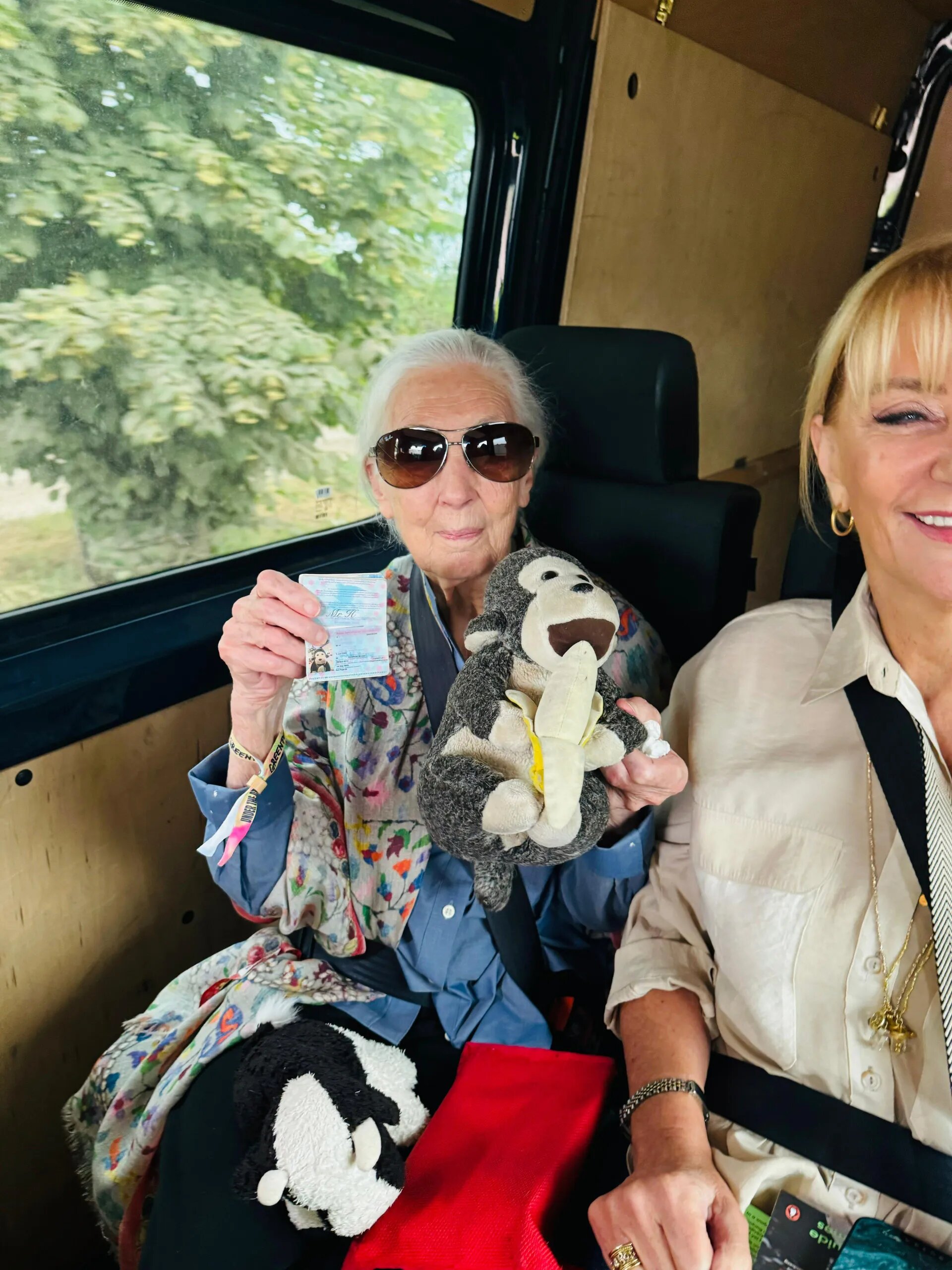 Dr. Goodall útban Glastonburybe Rosemary Reeddel, a Jane Goodall Institute UK kurátorával.