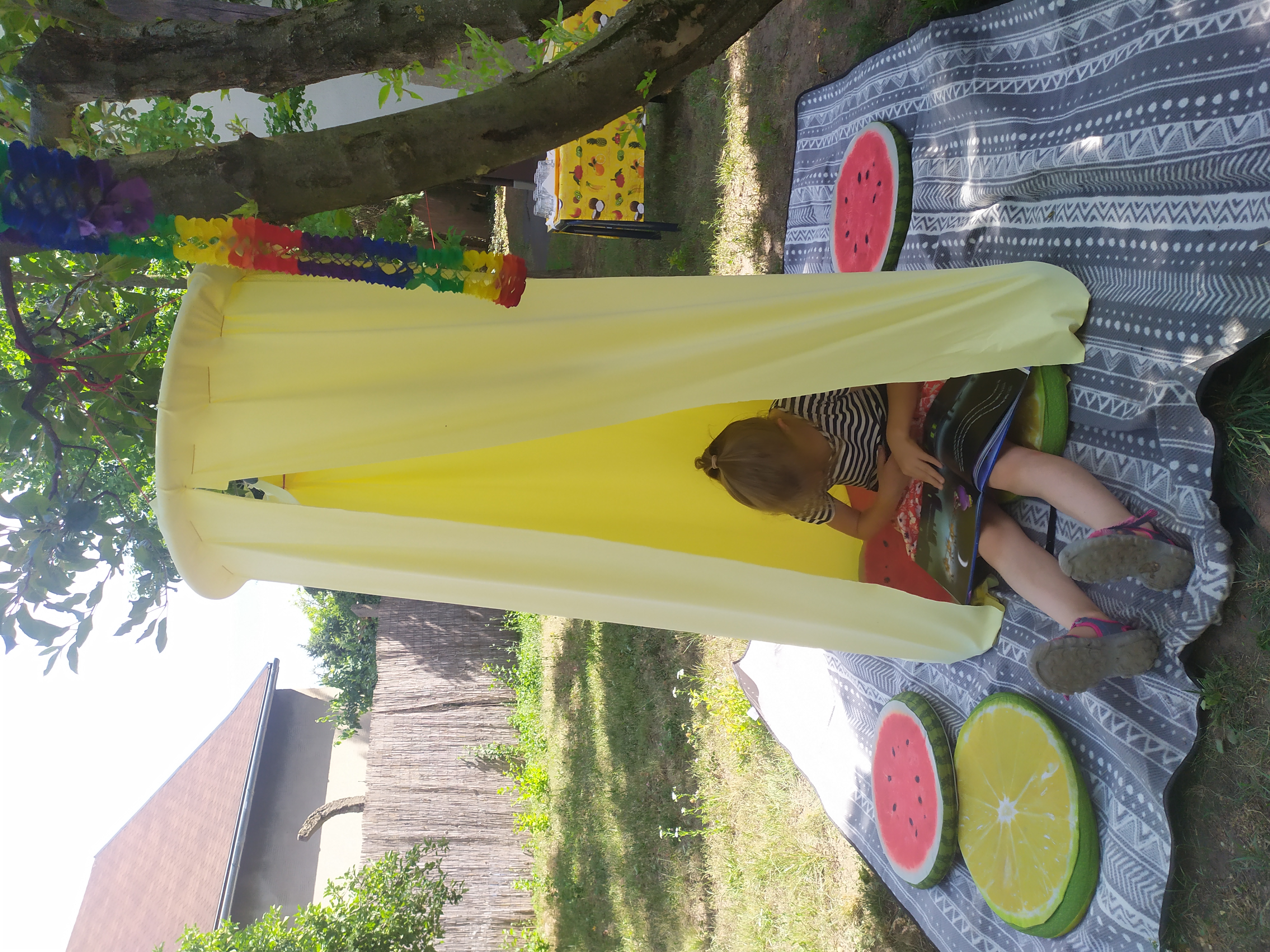 A délután az iskola udvarán jó hangulatban telt. A gyerekekkel közösen díszítettük a teret, lampionokkal, színes, vidám szalagokkal, saját készítésű baldachinos olvasó-kuckóval.