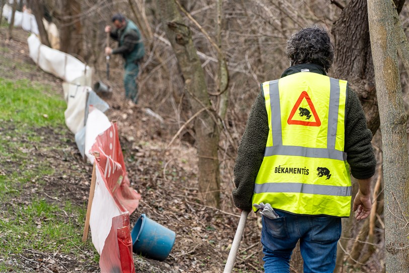 A tavalyi összefogás sikerén felbuzdulva idén is - még a békák tömeges megjelenése előtt - felállítottuk az ideiglenes kétéltű terelőrendszert, mellyel a villamossín, az út és az azon közlekedő autók jelentette legtöbbször végzetes akadály leküzdésében segítjük a varangyokat.